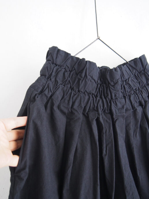 幅があるウエスト部分はハイウエストでも腰位置でも好みの丈感で穿いていただけます。