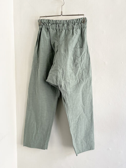 ヒップ周りにゆとりを持たせたサルエルパンツは膝から下にかけてテーパードが効いているので履くとスッキリとした印象です。