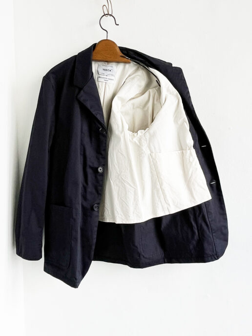 総裏地仕様、素材にナチュラルカラーのウォッシュドコットンを使用。