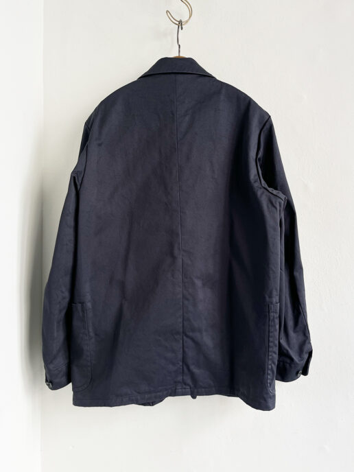 ラペル裏にボタンとループを配しているのでフロントを全部閉めて着用することも可能なデザインです。