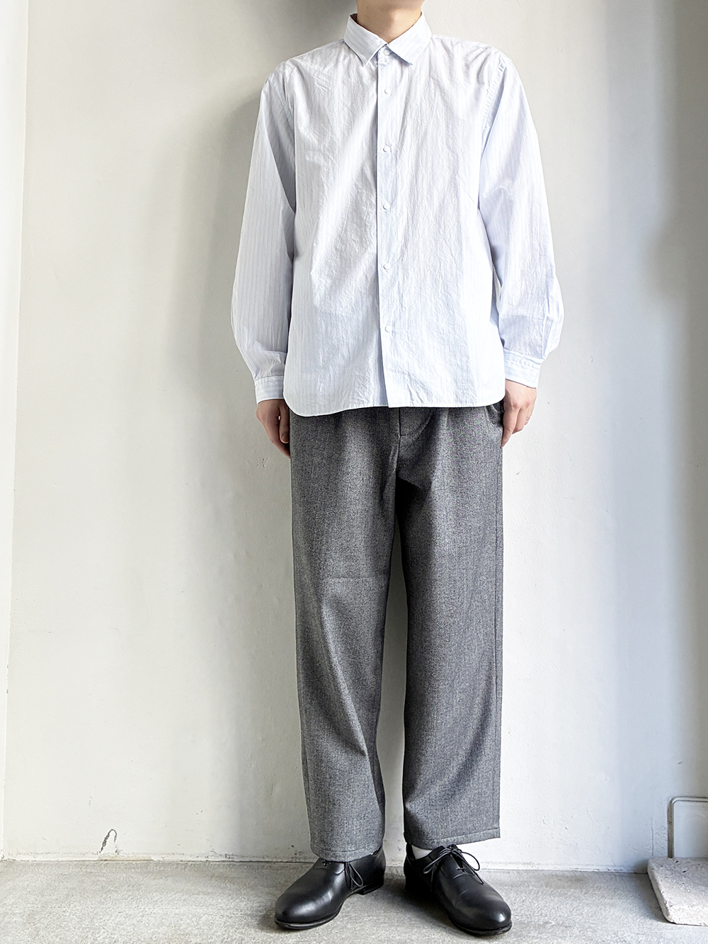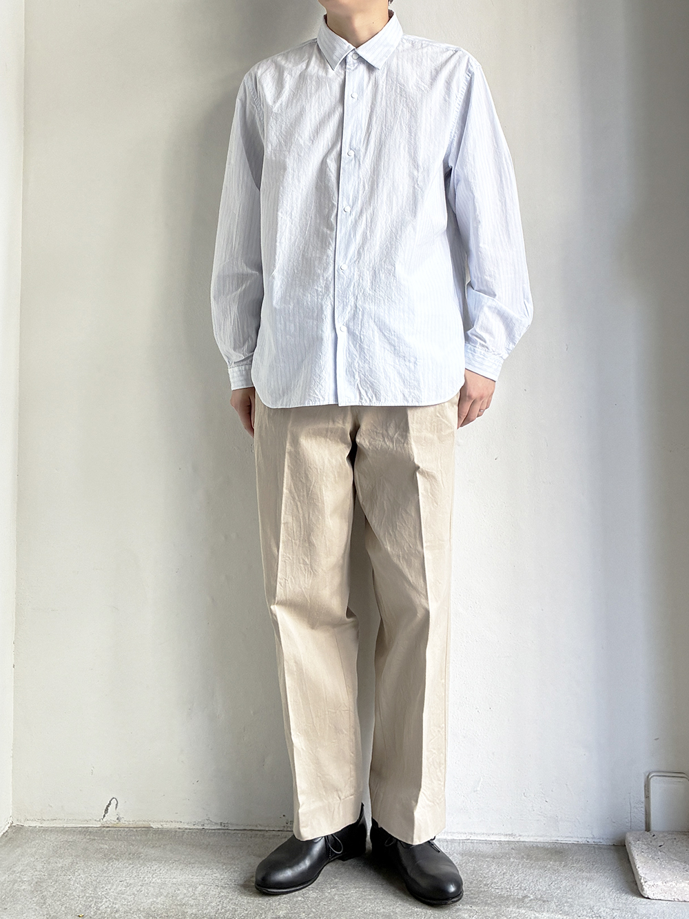 オーソドックスなレギュラーシャツの様なバランスなので様々な着こなしに取り入れて頂けます。