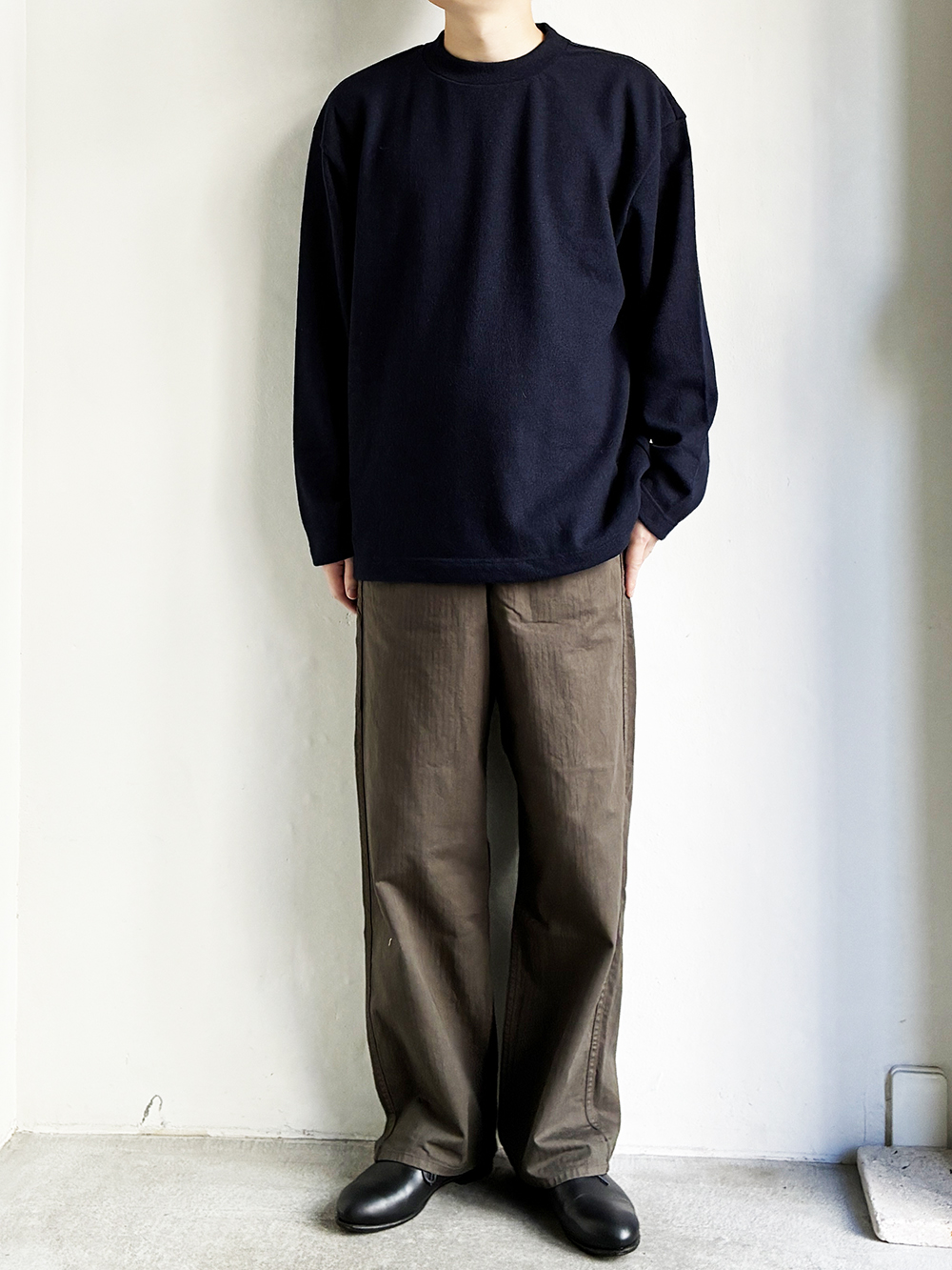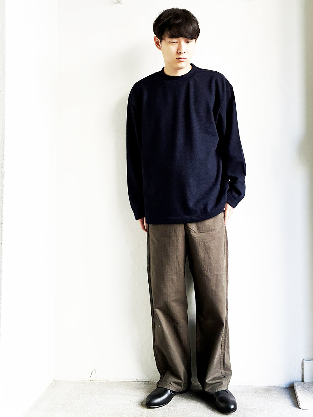 一日着ていても疲れない、リラックスフィットのニットです。