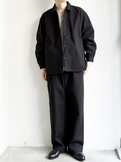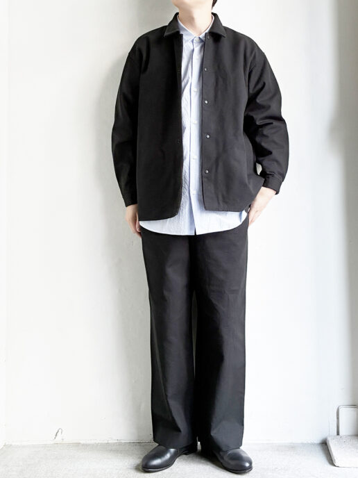 両裾にハンドポケットを配する等、ディテールにもこだわったプロダクト的なアイテムです。