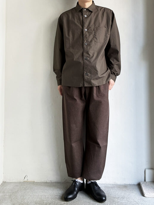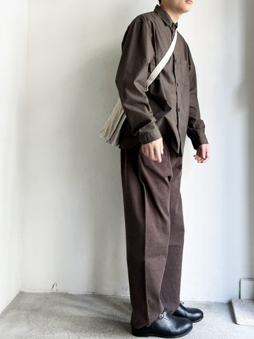 腰回りの優しいボリューム感とテーパードのバランスがとても良く、どんなコーディネートにもスッと馴染んでくれるシルエットです。