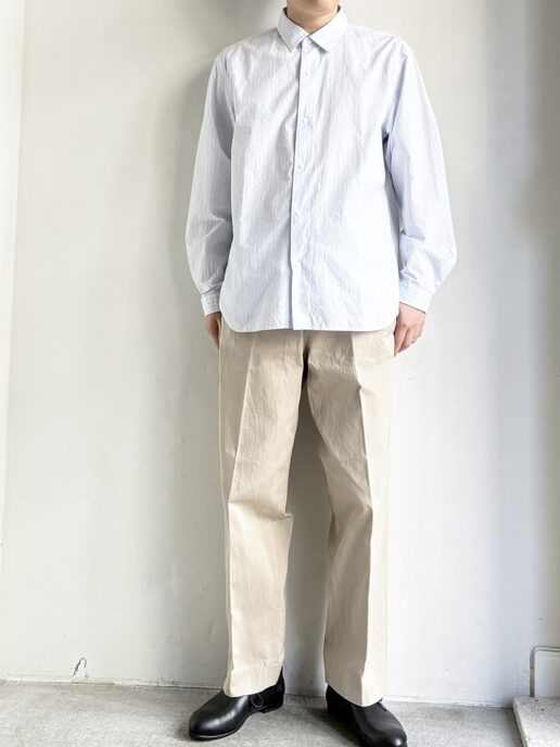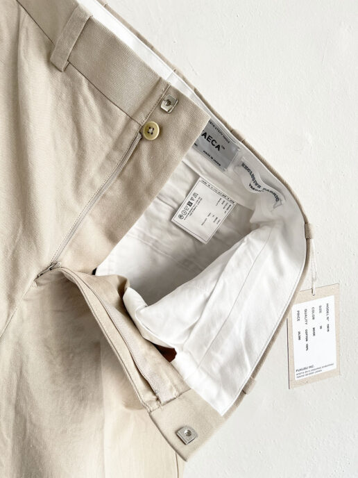 YAECAのチノクロスは程良い厚みで重すぎず、やわらかくしなやかな、履き心地の良い素材感です。