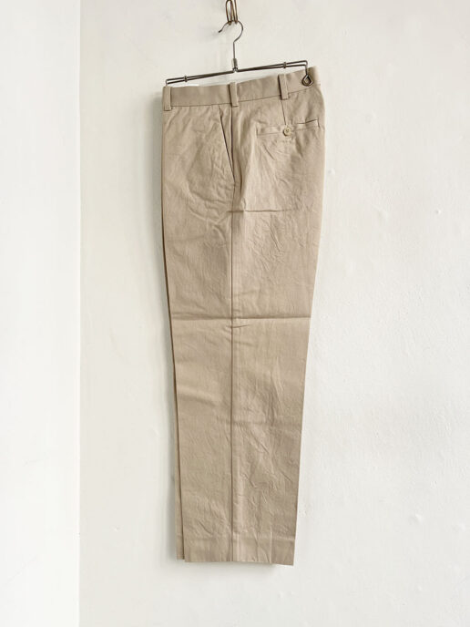 カジュアルなイメージのチノパンですが、ウエスト周りのつくりやシルエットで、とても上品な印象になっています。
