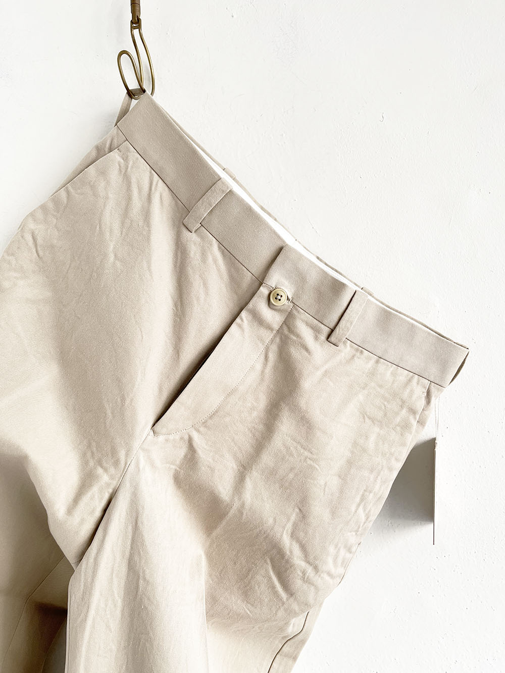 YAECAのチノクロスは程良い厚みで重すぎず、やわらかくしなやかな、履き心地の良い素材感です。