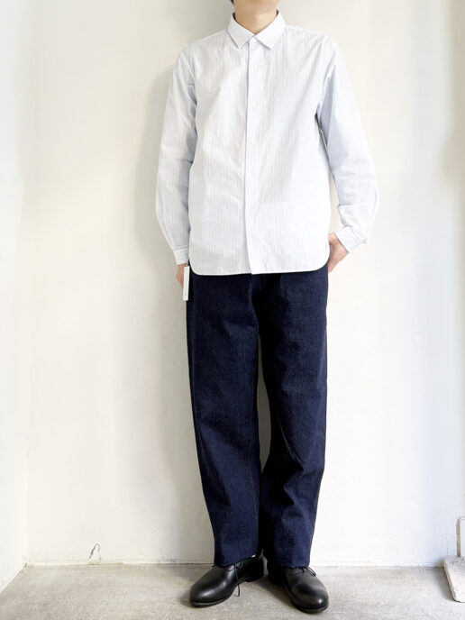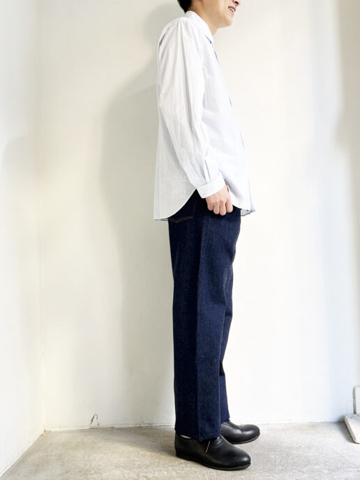 股上はやや深め、腰回りはゆったり軽いテーパードが掛かった飽きのこないシルエットです。