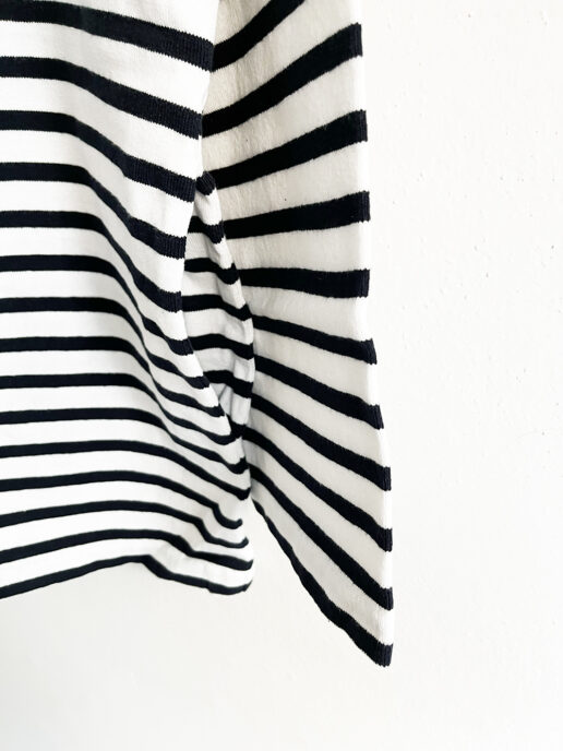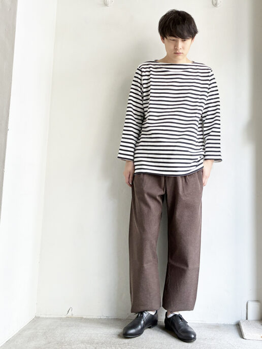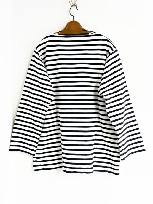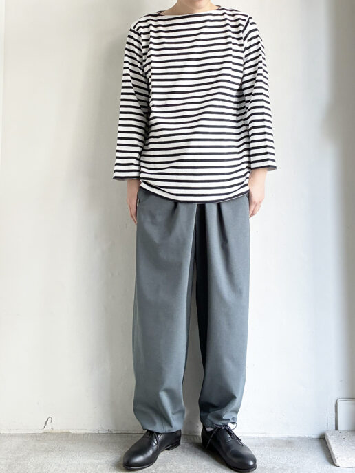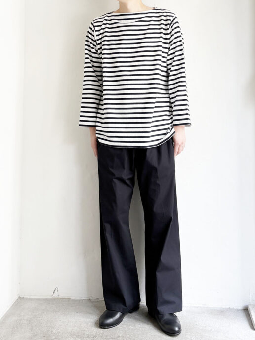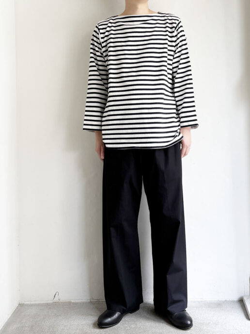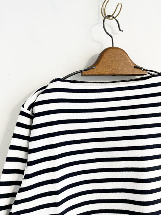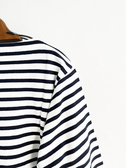 元々は漁師や船乗りのワークウェアとして生まれたバスクシャツは、着脱しやすいよう襟ぐりが広いボートネック仕様になります。