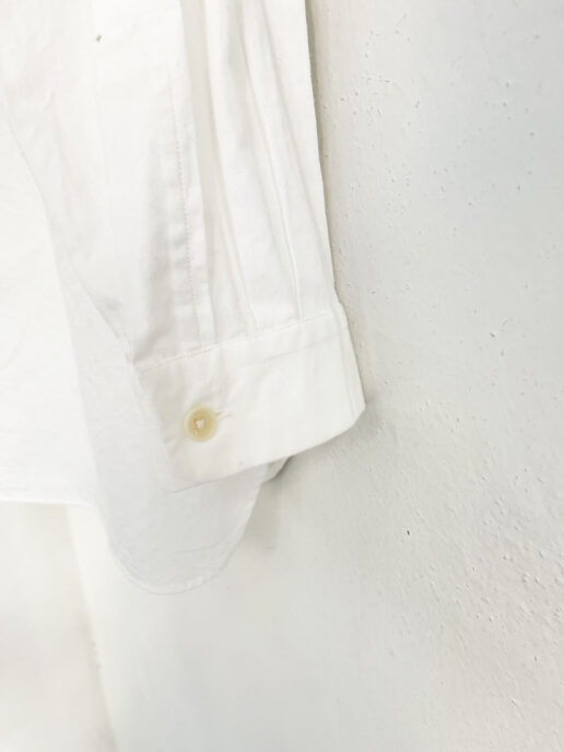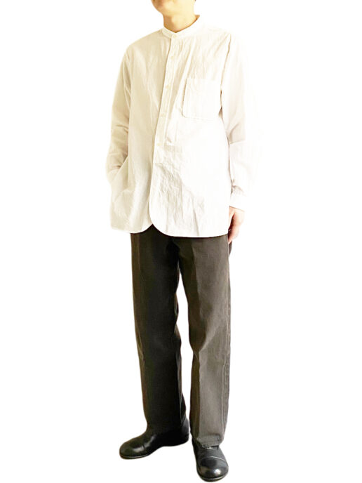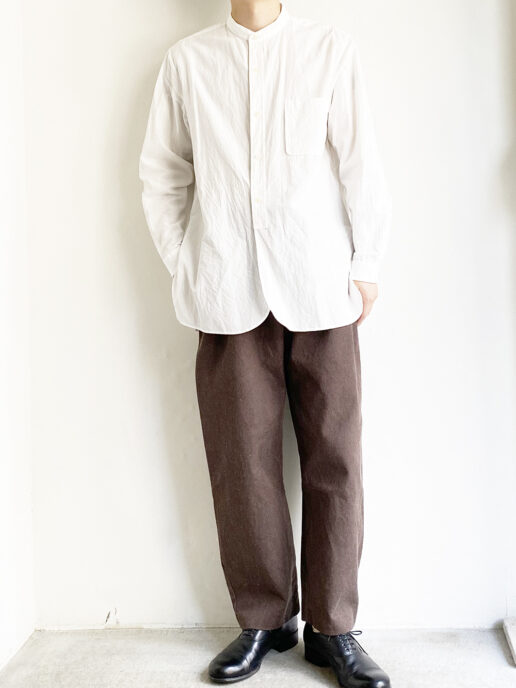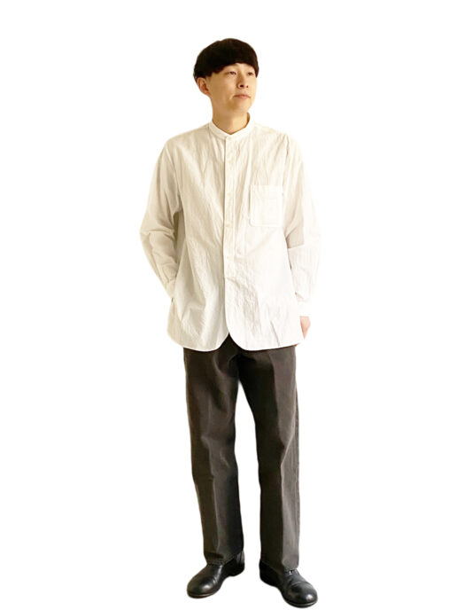 襟はスタンドカラー仕様、袖口はシングルカフスです。