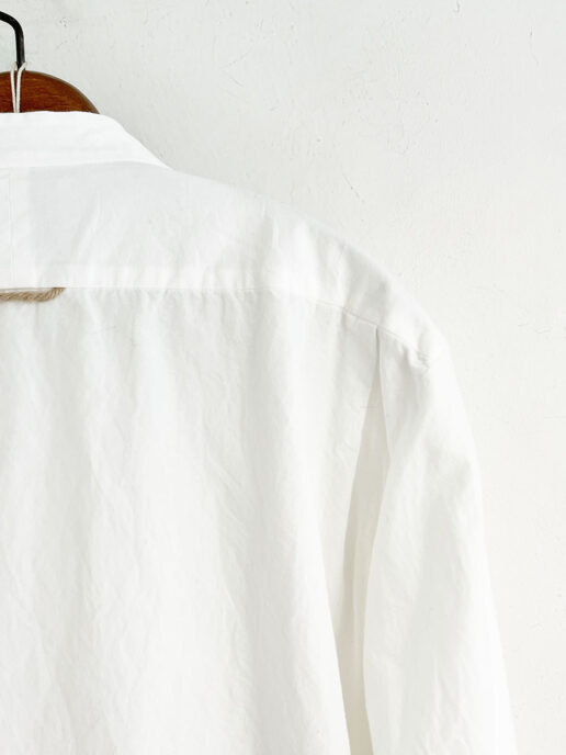 バックヨークの左右にタックを入れ、肩周りにゆとりを持たせることで動き易さを考慮した作りに。