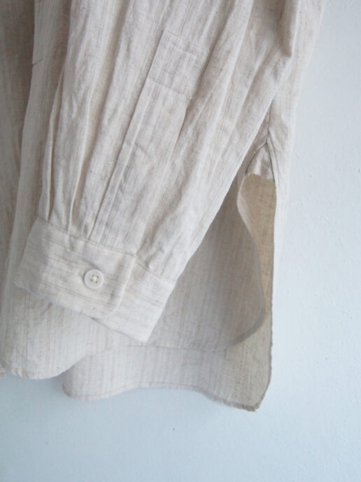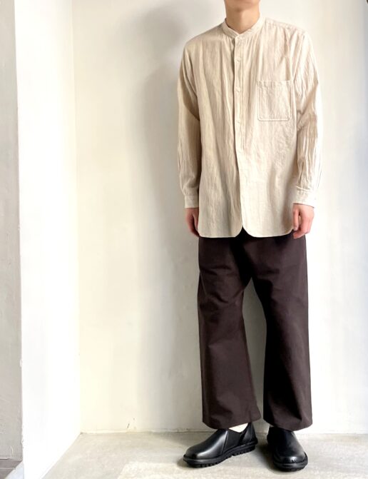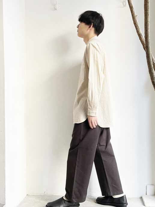 襟はスタンドカラー仕様、袖口はシングルカフスです。
