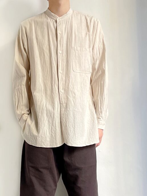 生地はしなやかで高品質な細番手のコットン糸とハリのあるリネンを用いて平織で高密度に織り上げています。
