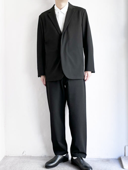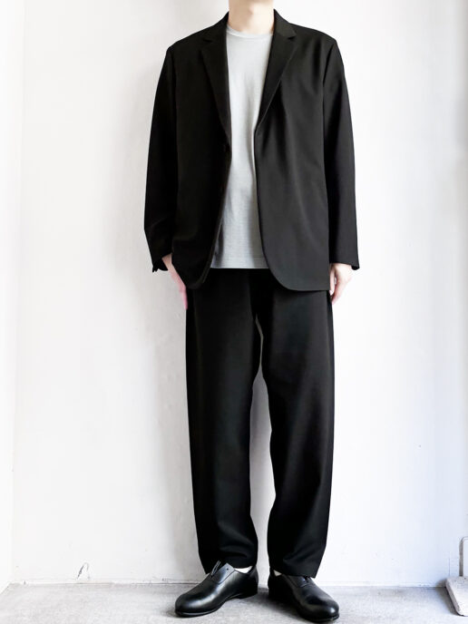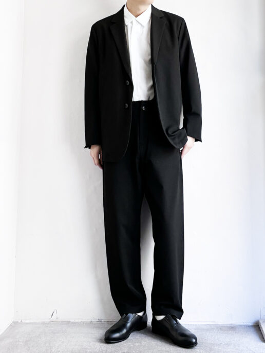 落とし気味の肩に身幅もゆとりを持たせたリラックス感のあるサイズです。