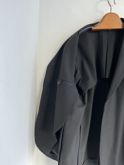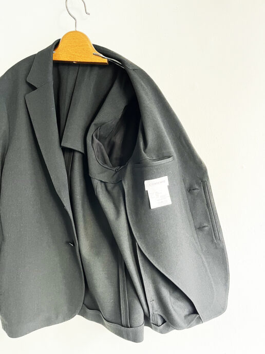 裏地は贅沢に同じ生地を使って前身頃、背中部分は機能を重視して半裏仕立てを採用。