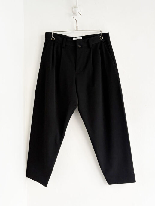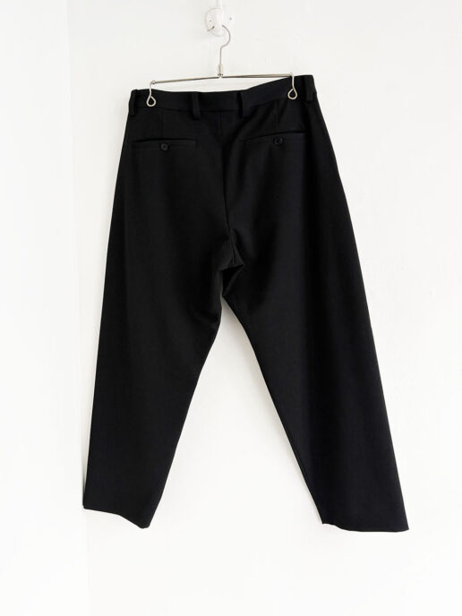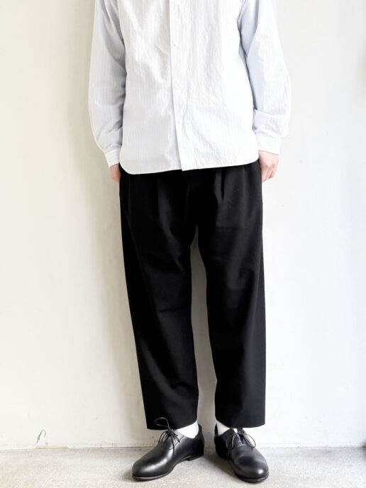 腰回りや太ももまわりはワイドに、裾幅は細めにしたテーパードシルエットです。