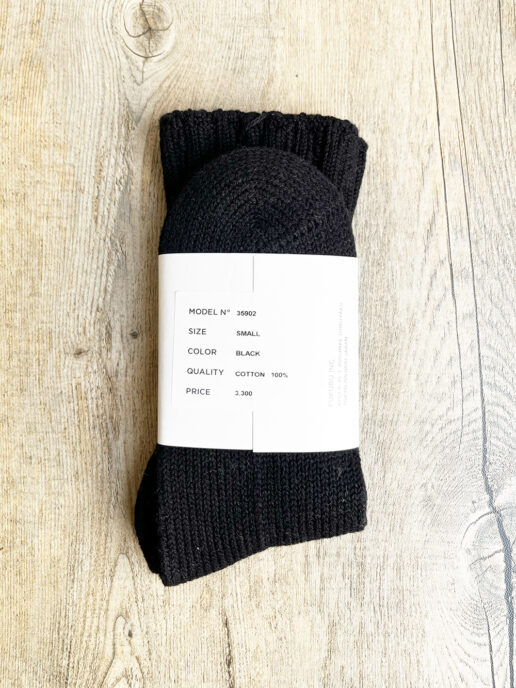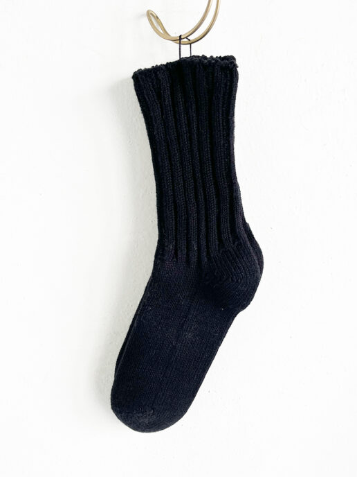 コットン糸をブラックに染めて、YAECA定番のリブ編みソックスを作りました。