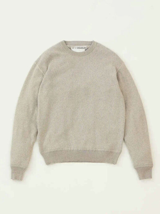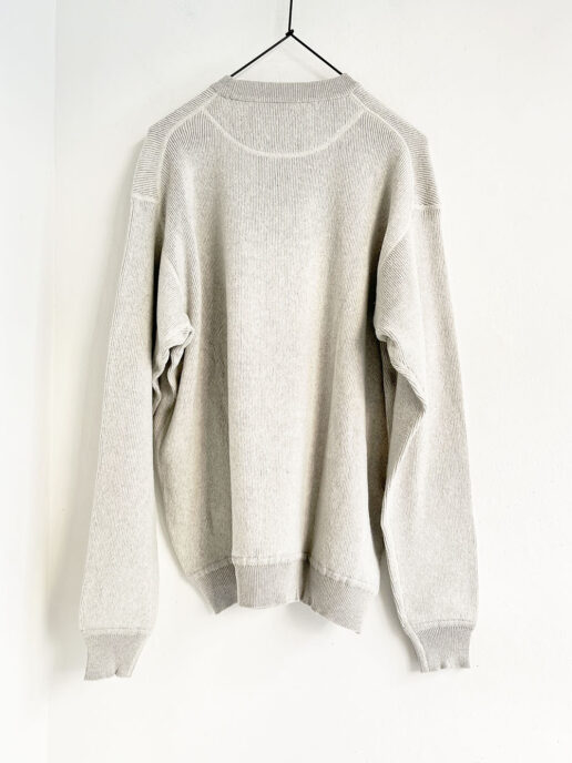 その糸を使って伸縮性のあるフライス編みにしたプルオーバーです。