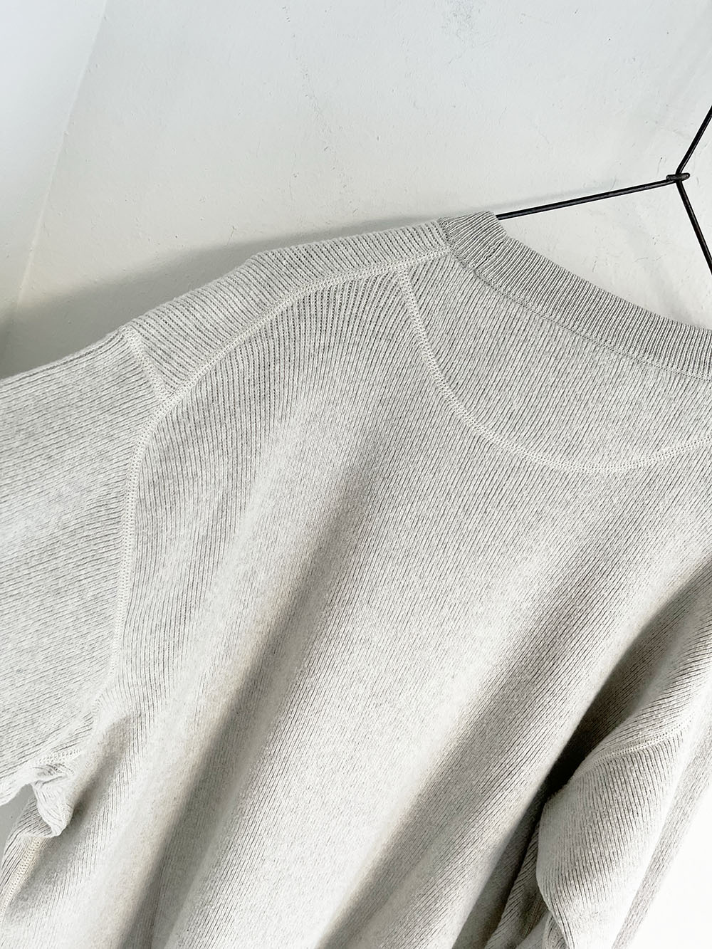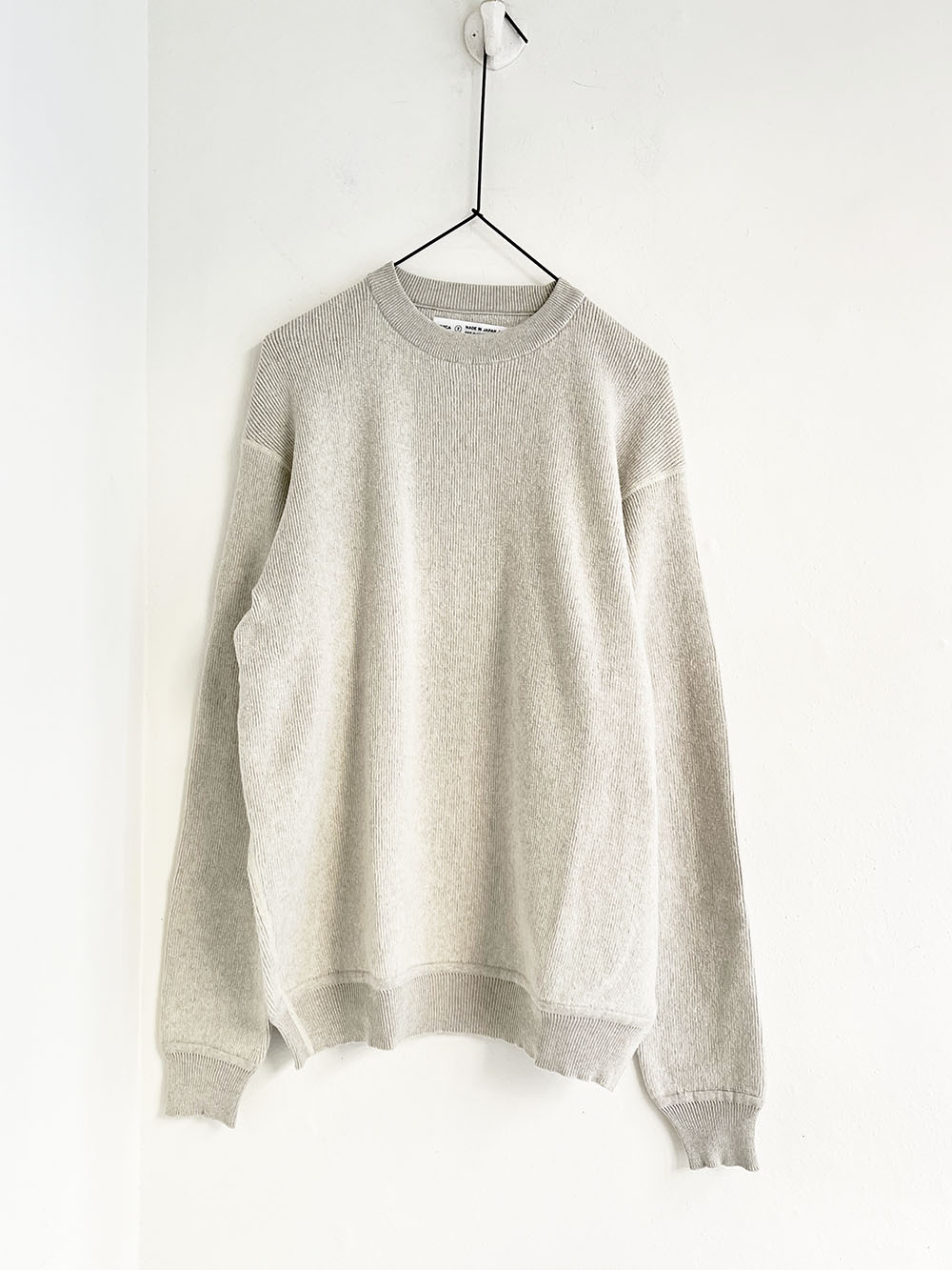 その糸を使って伸縮性のあるフライス編みにしたプルオーバーです。