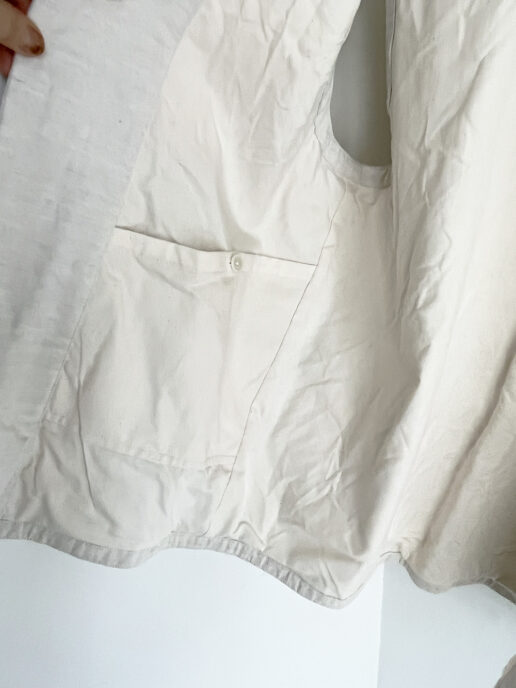左右に大きな内ポケット、片側はボタンで留めれる仕様。
