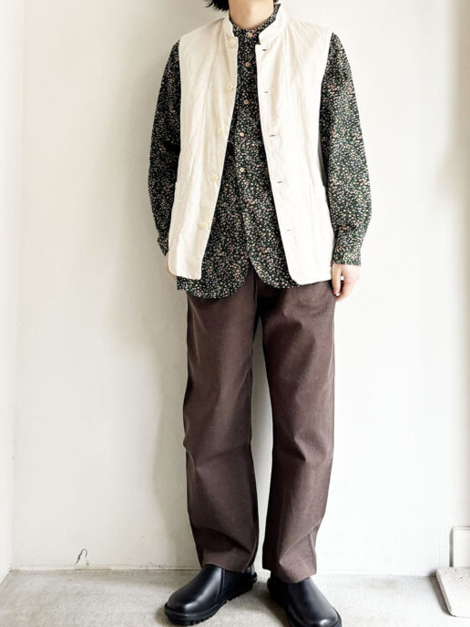 ニットやアウターの上に羽織るようなイメージで大きめのサイズ感にしています。