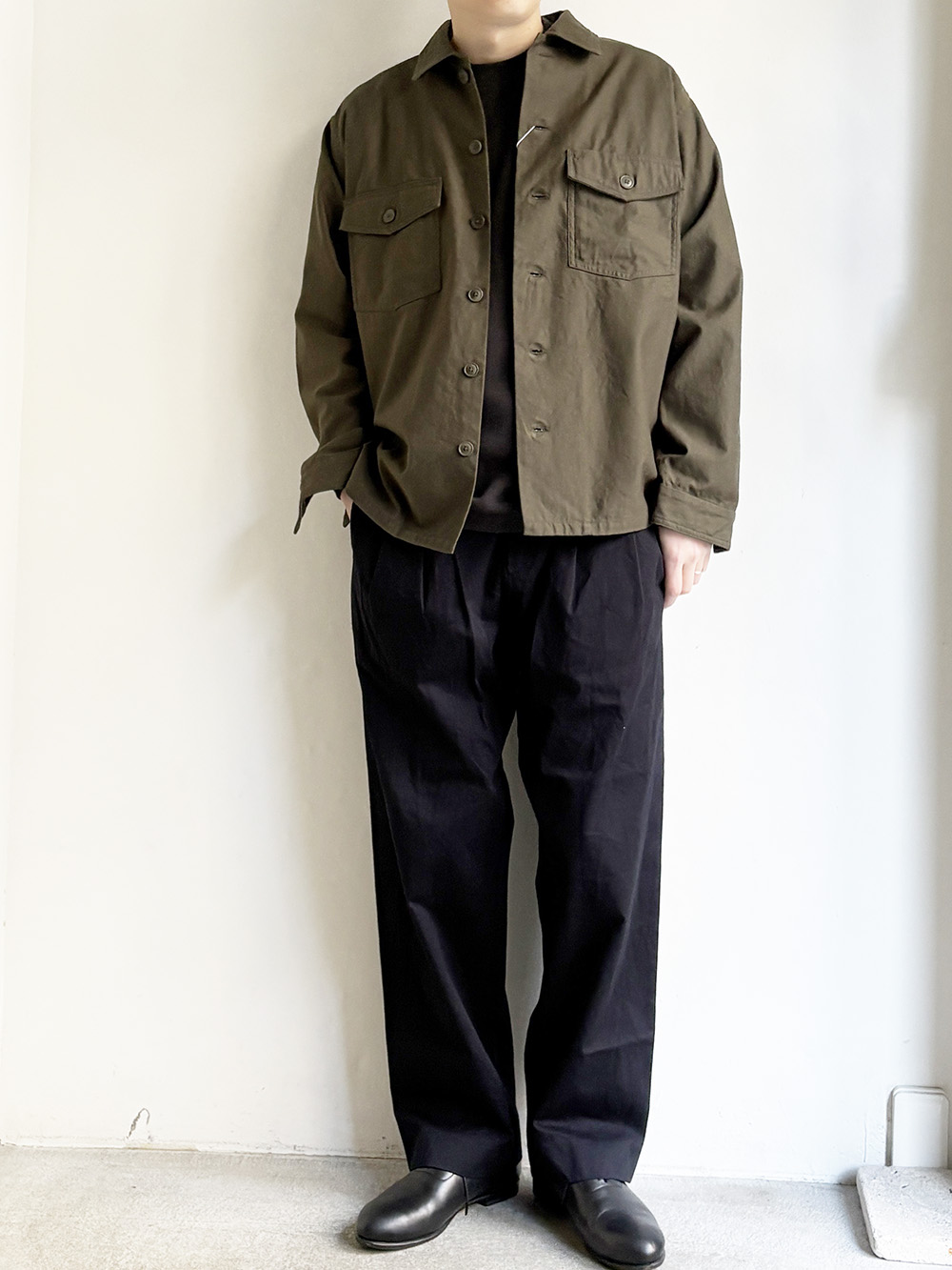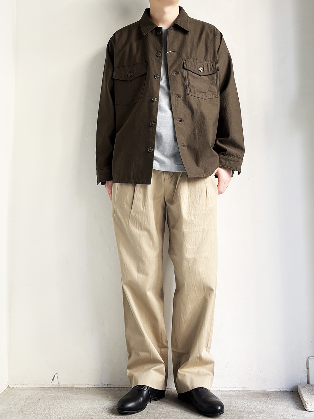 シャツジャケットのように羽織りとしての汎用性も高いアイテムです。